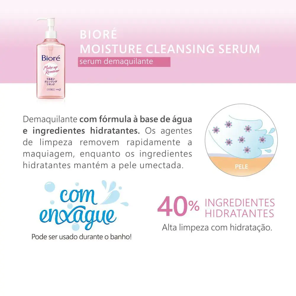 A inovação que transformará sua rotina de cuidados com a pele, proporcionando uma experiência única e eficaz na remoção da maquiagem. Este revolucionário sérum demaquilante é formulado para remover completamente toda e qualquer maquiagem, incluindo aquelas mais difíceis como máscara à prova d’água, delineador resistente, batom de longa duração e bases pesadas. Com tecnologia avançada vinda do Japão, o Sérum Demaquilante Bioré não apenas limpa profundamente seu rosto, mas também cuida dele. É um produto inovador no mercado brasileiro de beleza; trata-se de um limpador facial em formato sérum especialmente desenvolvido para oferecer uma limpeza completa sem deixar resíduos ou sensação oleosa na pele. Ideal para quem deseja praticidade aliada ao cuidado diário com a pele, este sérum pode ser utilizado mesmo durante o banho graças à sua fórmula exclusiva que funciona efetivamente tanto em peles secas quanto molhadas.